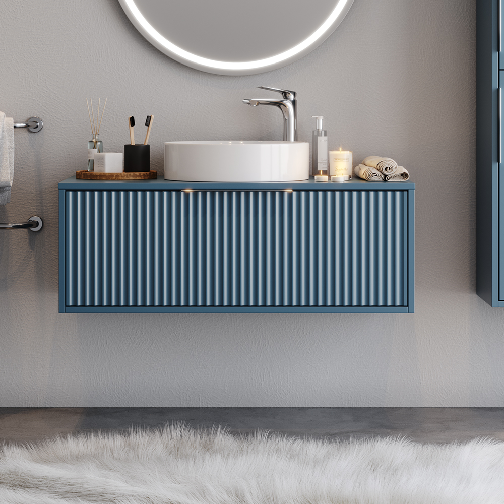 Πάγκος HOLE Μπλε MDF 18mm Λάκα 100 S3BHOL100BL 101x50x37cm Αποτελείται από: Πάγκος HOLE 100 κρεμαστός σε ματ λάκα και υλικό mdf. Διαθέτει μεγάλο ερμάριο για την τοποθέτηση και οργάνωση αντικειμένων . Νιπτήρας κεραμικός χρώματος λευκού, κορυφαίας κατασκευής και υψηλής αισθητικής. Διαθέτει οπή υπερχείλισης. Ματ λάκα 2 συστατικών σε MDF. Ο Πάγκος HOLE Μπλε απόχρωση αποτελεί ένα μοντέρνο κομμάτι με εργονομικό σχεδιασμό αλλά και λειτουργικότητα. Προσαρμόζεται σε κάθε τύπο μπάνιου. •Πρακτικοί αποθηκευτικοί χώροι •Μηχανισμοί για απαλό και αθόρυβο κλείσιμο •Εύκολη τοποθέτηση •Ετοιμοπαράδοτα προϊόντα Δεν συμπεριλαμβάνονται η μπαταρία και τα διακοσμητικά. Διατίθεται έτοιμο συναρμολογημένο.
