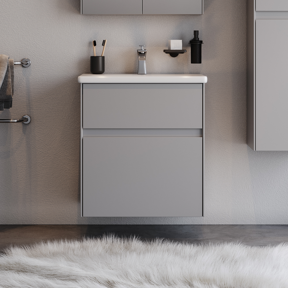 Πάγκος MALAGA Γκρι MDF 18mm Λάκα 65 S3BMAL065GRM 65×45.5x72cm Αποτελείται από: Πάγκος MALAGA Γκρι 65 κρεμαστός σε υλικό mdf. Διαθέτει δύο συρτάρια για την τοποθέτηση και οργάνωση αντικειμένων. Νιπτήρας κεραμικός χρώματος λευκού, κορυφαίας κατασκευής και υψηλής αισθητικής. Διαθέτει οπή υπερχείλισης. Ματ λάκα 2 συστατικών σε MDF. Ο Πάγκος MALAGA Γκρι απόχρωση αποτελεί ένα στυλάτο και μοντέρνο κομμάτι με εργονομικό σχεδιασμό αλλά και λειτουργικότητα. Προσαρμόζεται σε κάθε τύπο μπάνιου. •Πρακτικοί αποθηκευτικοί χώροι •Μηχανισμοί για απαλό και αθόρυβο κλείσιμο •Εύκολη τοποθέτηση •Ετοιμοπαράδοτα προϊόντα Δεν συμπεριλαμβάνονται η μπαταρία και τα διακοσμητικά. Διατίθεται έτοιμο συναρμολογημένο.