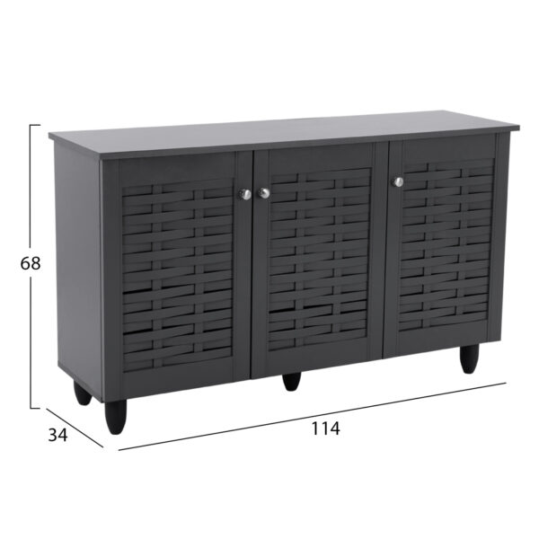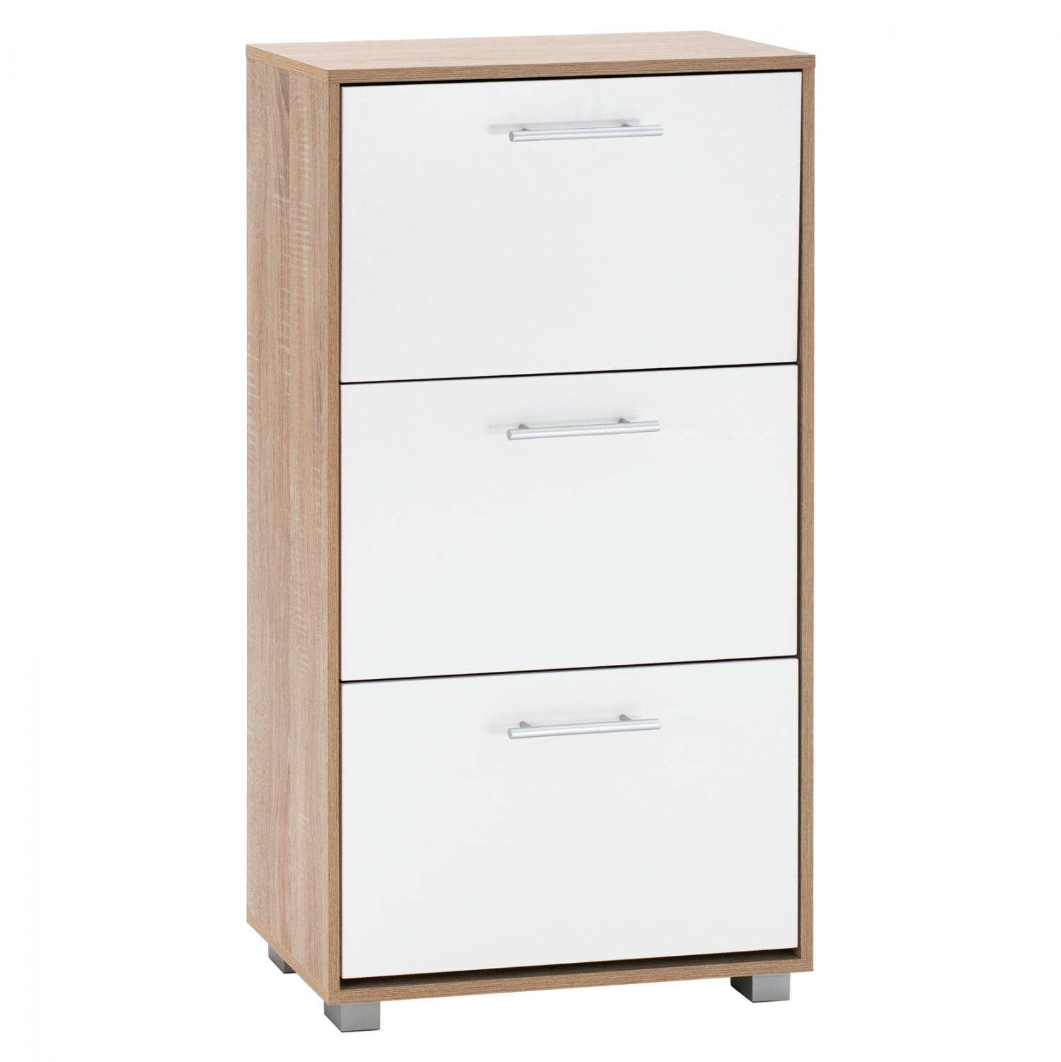 Παπουτσοθήκη από μελαμίνη άριστης ποιότητας, με 3 ανακλινόμενα ντουλάπια που χωράνε 18-21 ζευγάρια παπούτσια, σε sonama και λευκή απόχρωση με 3 πόρτες.