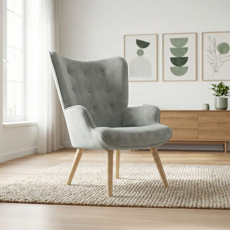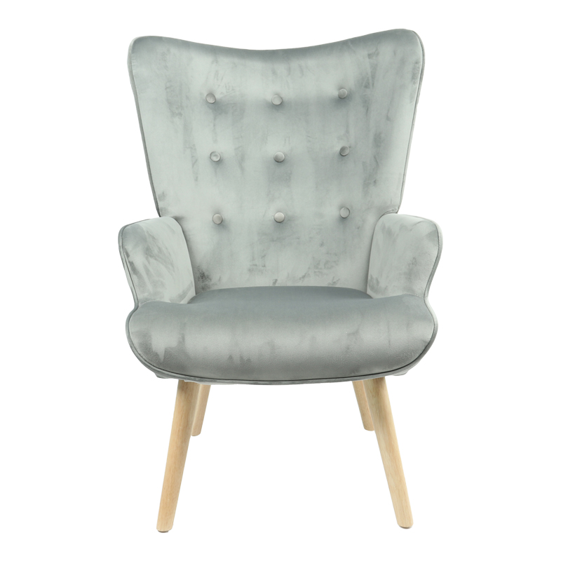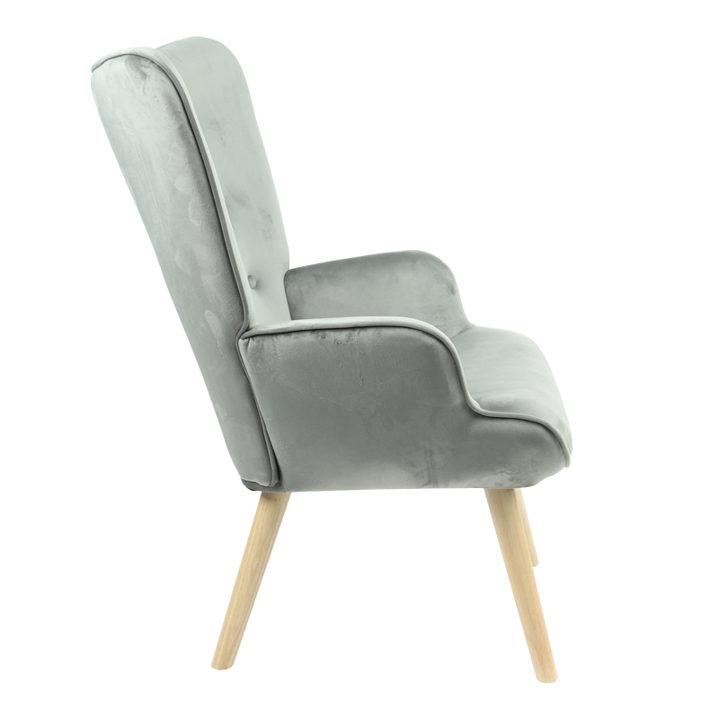 Πολυθρόνα Fluffy pakoworld βελούδο γκρι-φυσικό πόδι 75x69x96εκ