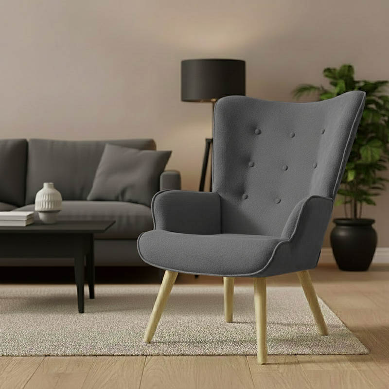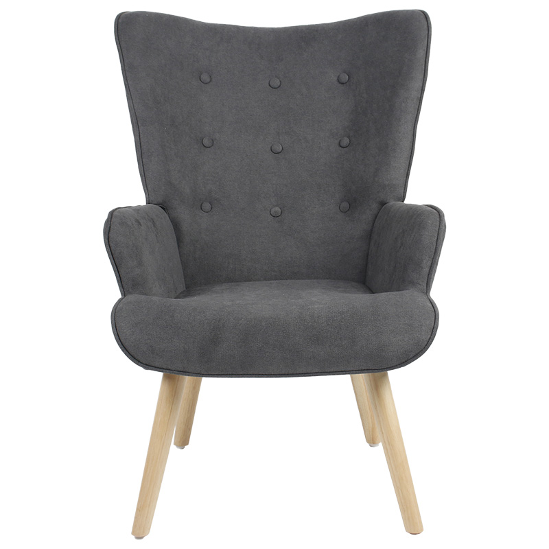 Η πολυθρόνα μπερζέρα Fluffy με διαχρονική πολυτέλεια, είναι φτιαγμένη από μασίφ ξύλο επενδυμένη με ύφασμα υψηλής ποιότητας σε χρώμα ανθρακί. Απολαύστε στιγμές χαλάρωσης σε μια εντυπωσιακή κατασκευή.