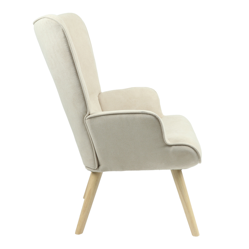 Πολυθρόνα Fluffy pakoworld ύφασμα μπεζ-φυσικό πόδι 75x69x96εκ