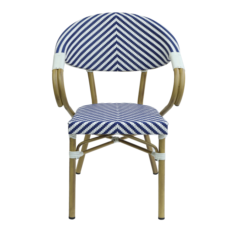 Πολυθρόνα Isaia pakoworld στοιβαζόμενη φυσικό αλουμίνιο-λευκό και μπλε pe rattan 57x57x83εκ
