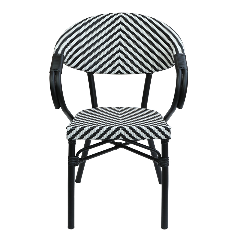 Πολυθρόνα Isaia pakoworld στοιβαζόμενη μαύρο αλουμίνιο-ασπρόμαυρο pe rattan 57x57x83εκ