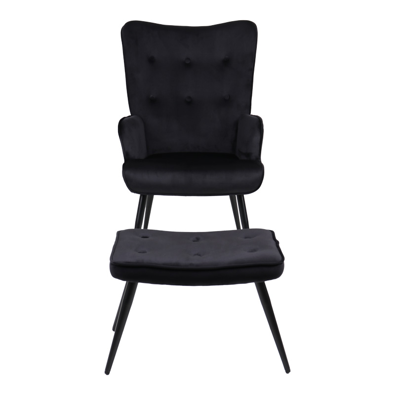 Πολυθρόνα με υποπόδιο Siella pakoworld μαύρο βελούδο και μαύρο μέταλλο πόδι 59x67x94εκ