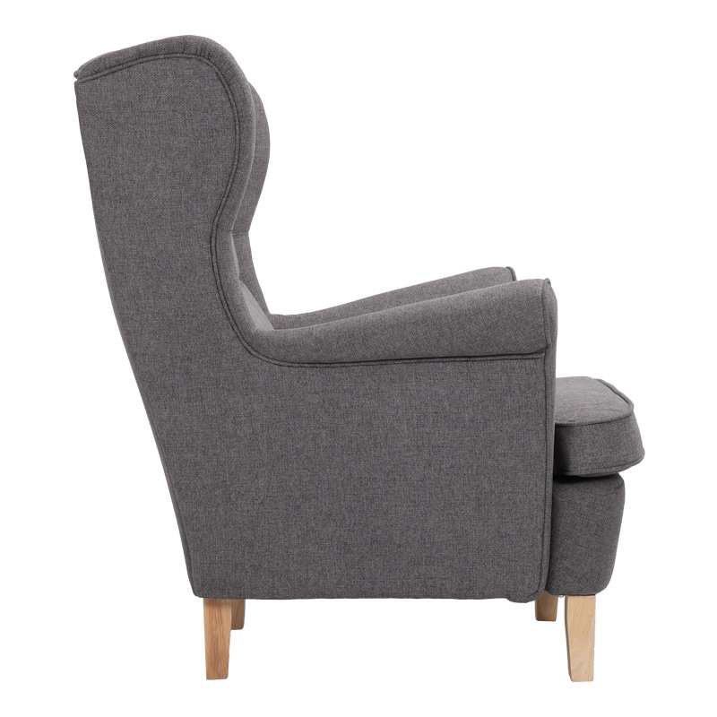 Πολυθρόνα – μπερζέρα Malei pakoworld ύφασμα σε γκρι απόχρωση-ξύλινα πόδια 85x93x100εκ