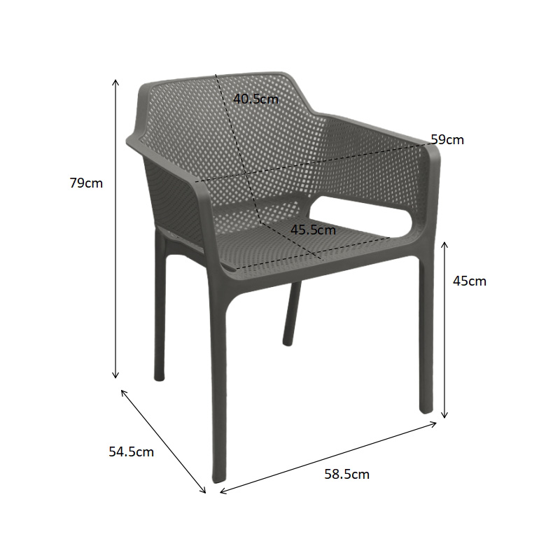 - Κατασκευασμένη από pp πολυπροπυλένιο υψηλής αντοχής. Το πολυπροπυλένιο είναι γνωστό για την αντοχή του στις καιρικές συνθήκες, την υγρασία και τις υπεριώδεις ακτίνες. Αυτό καθιστά την καρέκλα ιδανική για χρήση σε εξωτερικούς χώρους.