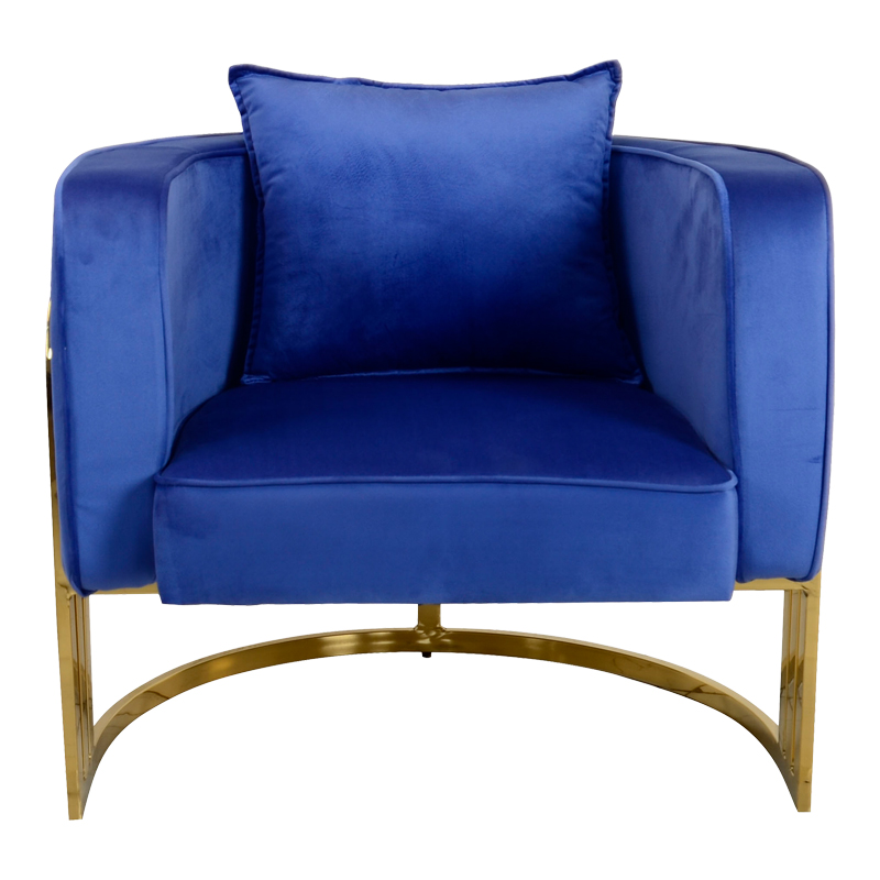 Πολυθρόνα Roblu pakoworld χρυσό μέταλλο και βελούδο σε μπλε απόχρωση 72×77.4×70εκ