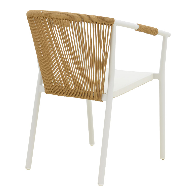 - Πλάτη καρέκλας από εξαιρετικής ποιότητας ρατάν. Η κύρια ιδιότητα του ράταν είναι η ευελιξία του, καθώς μπορεί να πλεκτεί και να διαμορφωθεί εύκολα. Επίσης, είναι ανθεκτικό και αντέχει στις καιρικές συνθήκες, καθιστώντας το ιδανικό για επιπλέον εξωτερικούς χώρους.