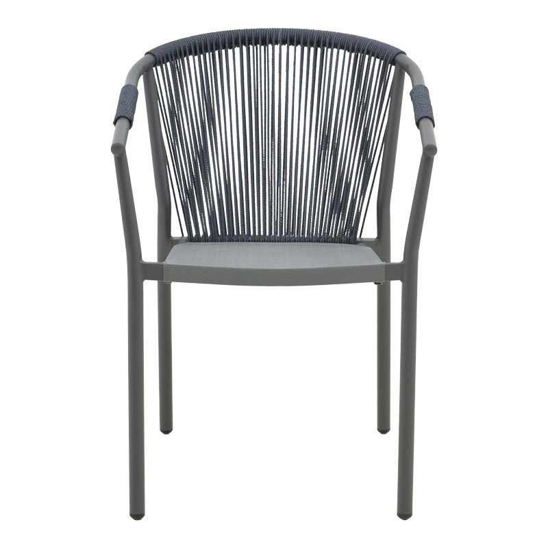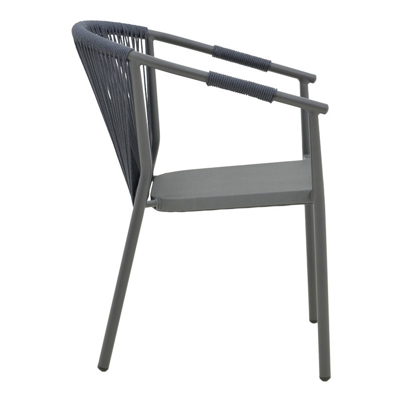 Πολυθρόνα Kherson pakoworld αλουμίνιο σχοινί ανθρακί-μαξιλάρι γκρι