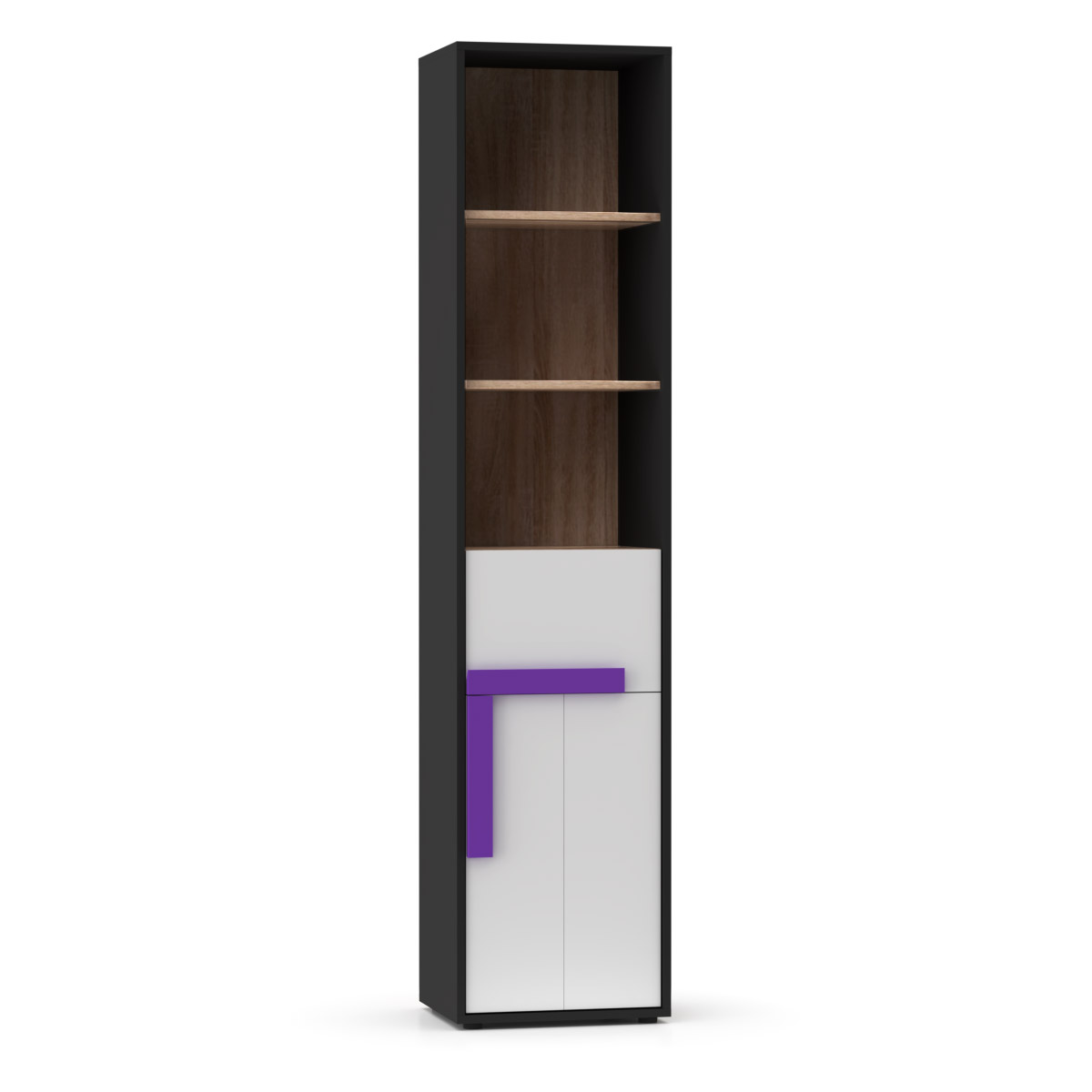 Ραφιέρα για βιβλία και διακοσμητικά υψηλής ποιότητας και αντοχής, σε απόχρωση γραφίτης, σονόμα, λευκό. Το έπιπλο αποτελέιται από δύο ράφια και δύο ντουλάπια καθώς και δύο πόμολα με χρώμα της επιλογής σας. Ιδανική λύση για την οργάνωση και διακόσμηση του παιδικού δωματίου.