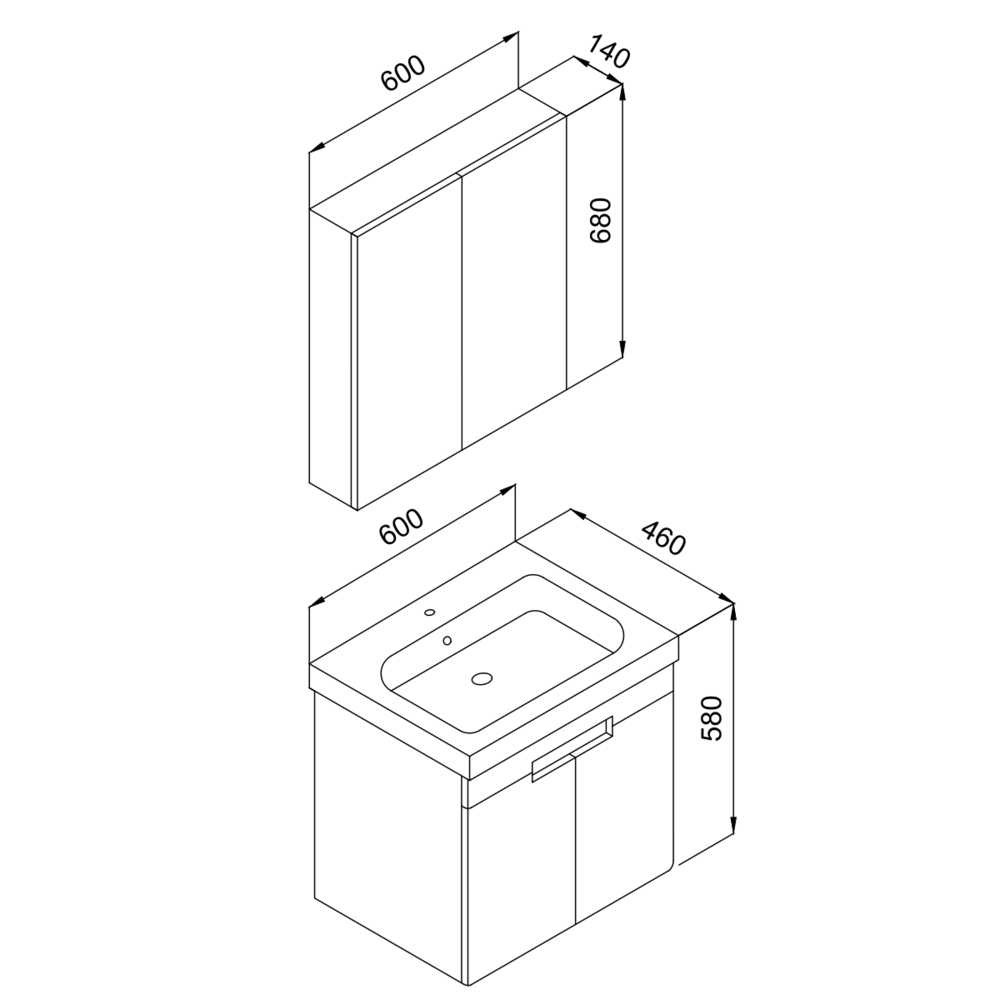 Σετ Έπιπλο Μπάνιο TREND Ανθρακί MDF 18mm Λάκα 60 9STRE060ABM