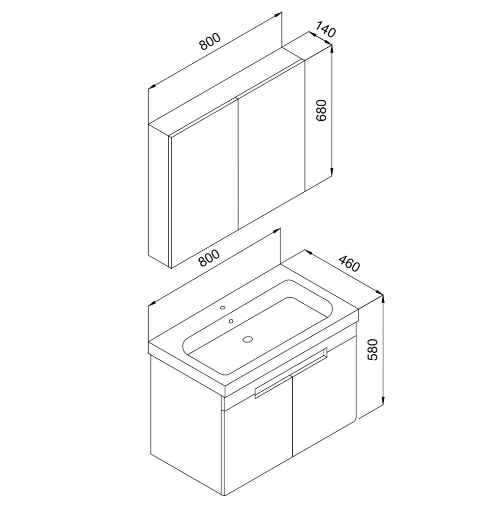 Σετ Έπιπλο Μπάνιο TREND Ανθρακί MDF 18mm Λάκα 80 9STRE080ABM