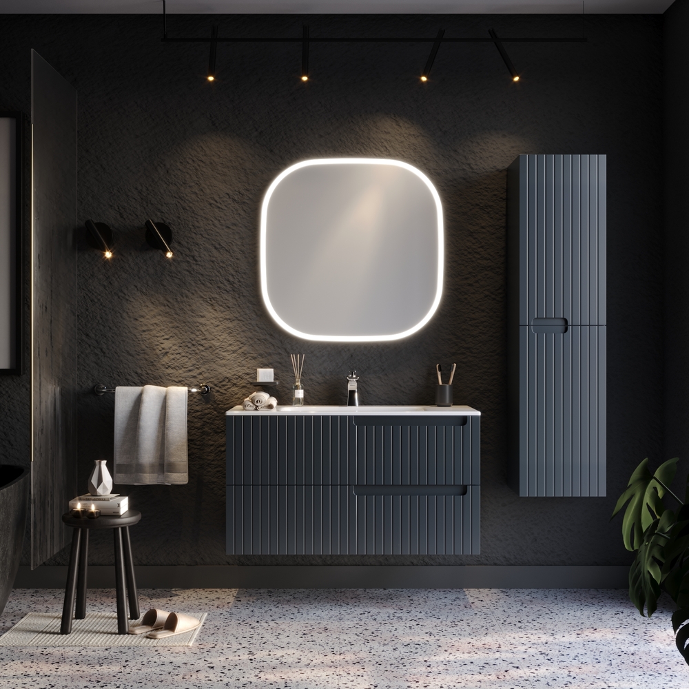 Σετ Έπιπλο Μπάνιου ENZA Ανθρακί MDF 18mm Λάκα 100 9SENZ100ANTM Πάγκο 101×46.5x52cm Αποτελείται από: Πάγκος ENZA Ανθρακί 101 κρεμαστός σε υλικό mdf. Διαθέτει δύο συρτάρια για την τοποθέτηση και οργάνωση αντικειμένων. Καθρέφτης με περιμετρικό LED φωτισμό. Νιπτήρας πορσελάνης χρώματος λευκό, κορυφαίας κατασκευής και υψηλής αισθητικής. Διαθέτει οπή υπερχείλισης. Ματ λάκα σε mdf Σετ Έπιπλο Μπάνιου ENZA Ανθρακί απόχρωση αποτελεί ένα στυλάτο και μοντέρνο κομμάτι με εργονομικό σχεδιασμό αλλά και λειτουργικότητα. Προσαρμόζεται σε κάθε τύπο μπάνιου. •Πρακτικοί αποθηκευτικοί χώροι •Μηχανισμοί για απαλό και αθόρυβο κλείσιμο •Εύκολη τοποθέτηση •Ετοιμοπαράδοτα προϊόντα Δεν συμπεριλαμβάνονται η μπαταρία, η στήλη και τα διακοσμητικά. Διατίθεται έτοιμο συναρμολογημένο.