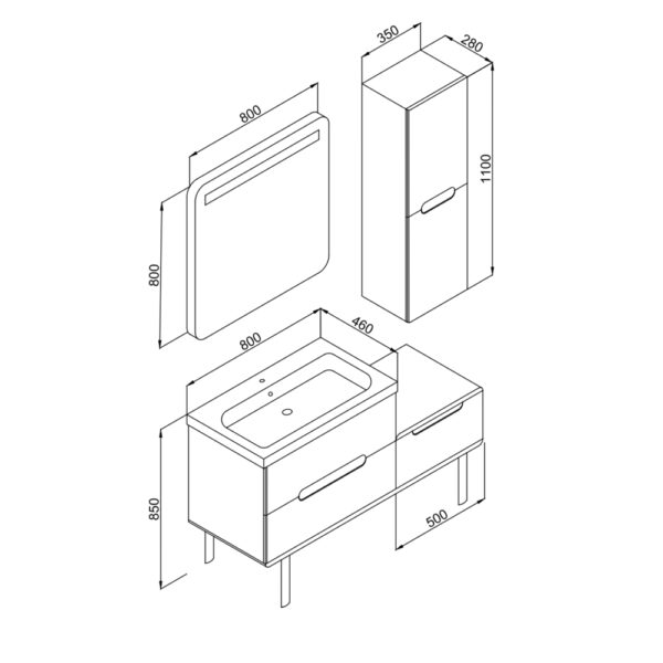 Σετ Επίπλου DIVA 80 cm Κόντρα Πλακέ Θαλάσσης (Plywood) χρ. ΑΝΘΡΑΚΙ 9SDIV080ANTH