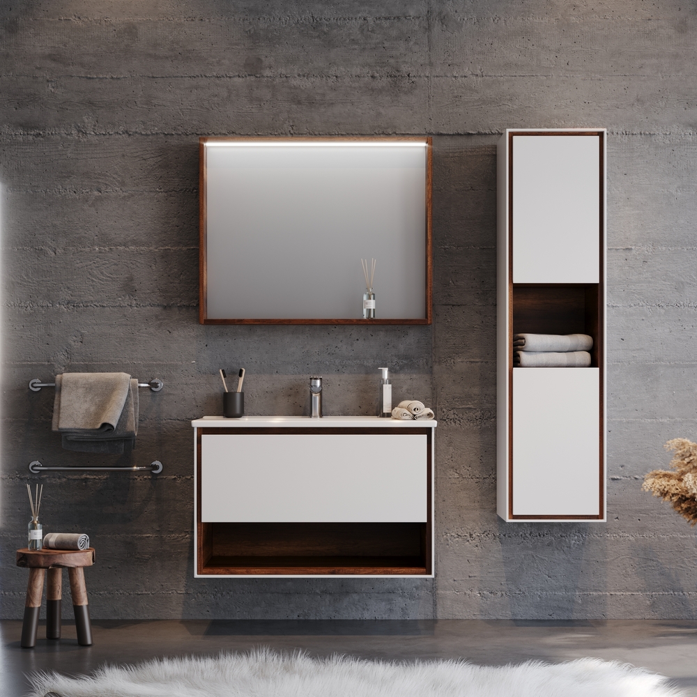 Σετ Έπιπλο Μπάνιου NEW LUNA Λευκό MDF 18mm Λάκα 85 9SLUN085WBN Πάγκο 85×45.5x63cm Αποτελείται από: Πάγκος NEW LUNA Λευκό 85 κρεμαστός σε υλικό mdf. Διαθέτει ένα συρτάρι και ένα ράφι για την τοποθέτηση και οργάνωση αντικειμένων. Καθρέφτης με LED φωτισμό στο πάνω μέρος. Το πλαίσιο του καθρέπτη είναι από mdf με ματ λάκα. Αυτόματο άνοιγμα φωτισμού με αισθητήρα ανίχνευσης κίνησης(SENSOR) Νιπτήρας πορσελάνης χρώματος λευκού, κορυφαίας κατασκευής και υψηλής αισθητικής. Διαθέτει οπή υπερχείλισης. Ματ λάκα σε mdf Σετ Έπιπλο Μπάνιου NEW LUNA Λευκή απόχρωση αποτελεί ένα στυλάτο και μοντέρνο κομμάτι με εργονομικό σχεδιασμό αλλά και λειτουργικότητα. Προσαρμόζεται σε κάθε τύπο μπάνιου. •Πρακτικοί αποθηκευτικοί χώροι •Μηχανισμοί για απαλό και αθόρυβο κλείσιμο •Εύκολη τοποθέτηση •Ετοιμοπαράδοτα προϊόντα Δεν συμπεριλαμβάνονται η μπαταρία, η στήλη και τα διακοσμητικά. Διατίθεται έτοιμο συναρμολογημένο.