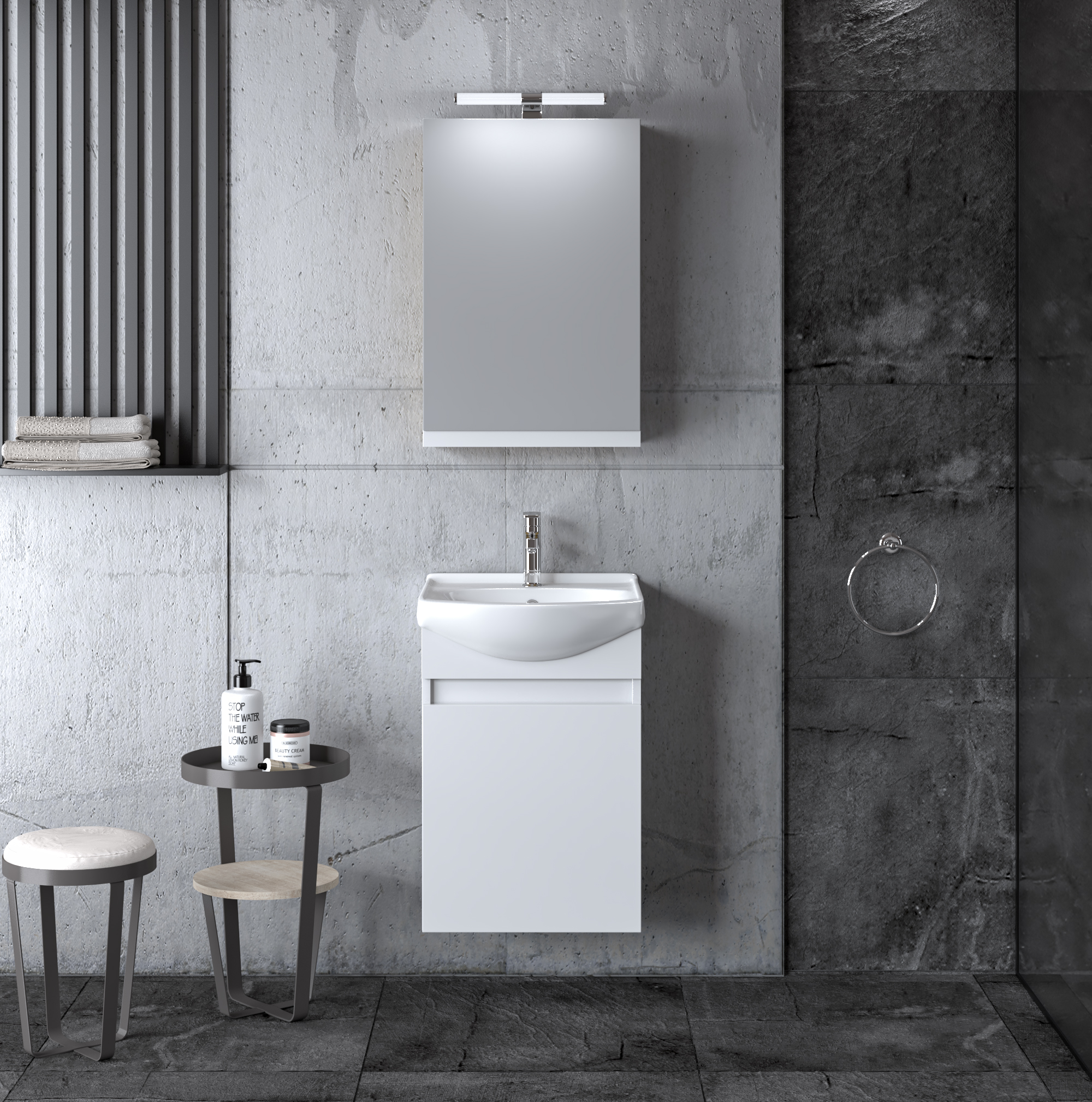 Σετ Έπιπλο Μπάνιου SIENA WHITE 45 9SSI045GL0W Πάγκος 41x25x60cm, Νιπτήρας 45x37cm