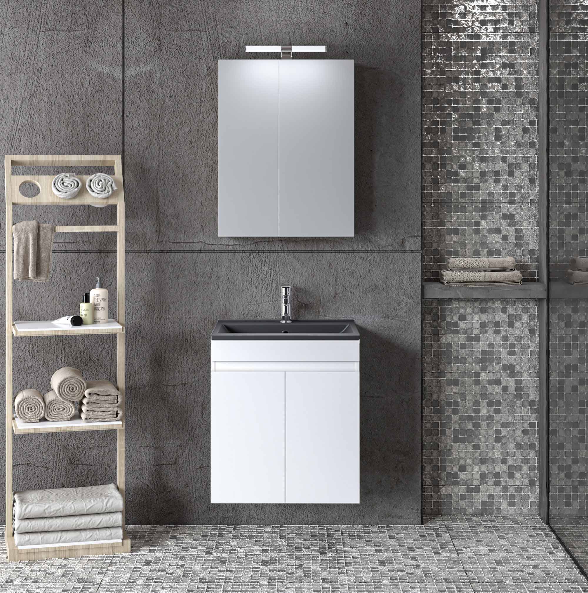 ΣΕΤ ΕΠΙΠΛΟΥ OMEGA 50cm χρ. (W.BL) ΛΕΥΚΟ GLOSS 9SOM050GLBW Πάγκο 50x44x60 • Πάγκος κρεμαστός OMEGA ΛΕΥΚΟ GLOSS 50 με τέλεια εφαρμογή σε όλες τις επιφάνειες με ή χωρίς πλακίδια. Περιλαμβάνει μεγάλο ερμάριο για την εξοικονόμηση επιπλέον αποθηκευτικού χώρου στο μπάνιο. • Καθρέφτης OMEGA ΛΕΥΚΟ GLOSS 45 . Περιλαμβάνει πρόσοψη καθρέφτη με δύο πόρτες. Διαθέτει εσωτερικό ράφι για να οργανώνετε καλύτερα την αποθήκευση χρηστικών αντικειμένων καθημερινής χρήσης για όλα τα μέλη της οικογένειάς σας.. •Νιπτήρας SLIM 50 από μαύρη πορσελάνη κορυφαίας ποιότητας και υψηλής αντοχής και αισθητικής. Διαθέτει οπή υπερχείλισης. Μελαμίνη 16mm πάχος Το Σετ Έπιπλο Μπάνιου Omega σε απόχρωση ΛΕΥΚΟ GLOSS αποτελεί ένα μοντέρνο κομμάτι για το μπάνιο σας! Έχει την υφή και την όψη του ξύλου σε αποχρώσεις του μπεζ. Με εργονομικό σχεδιασμό αλλά και λειτουργικότητα. •Πρακτικοί αποθηκευτικοί χώροι •Μηχανισμοί για απαλό και αθόρυβο κλείσιμο •Εύκολη τοποθέτηση •Ετοιμοπαράδοτα προϊόντα Δεν συμπεριλαμβάνονται το φωτιστικό και η μπαταρία. Διατίθεται έτοιμο συναρμολογημένο.