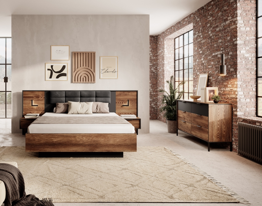 Σετ Κρεβατοκάμαρας Oryana Καρυδιά με υφασμάτινο κεφαλάρι για στρώμα 160x200cm