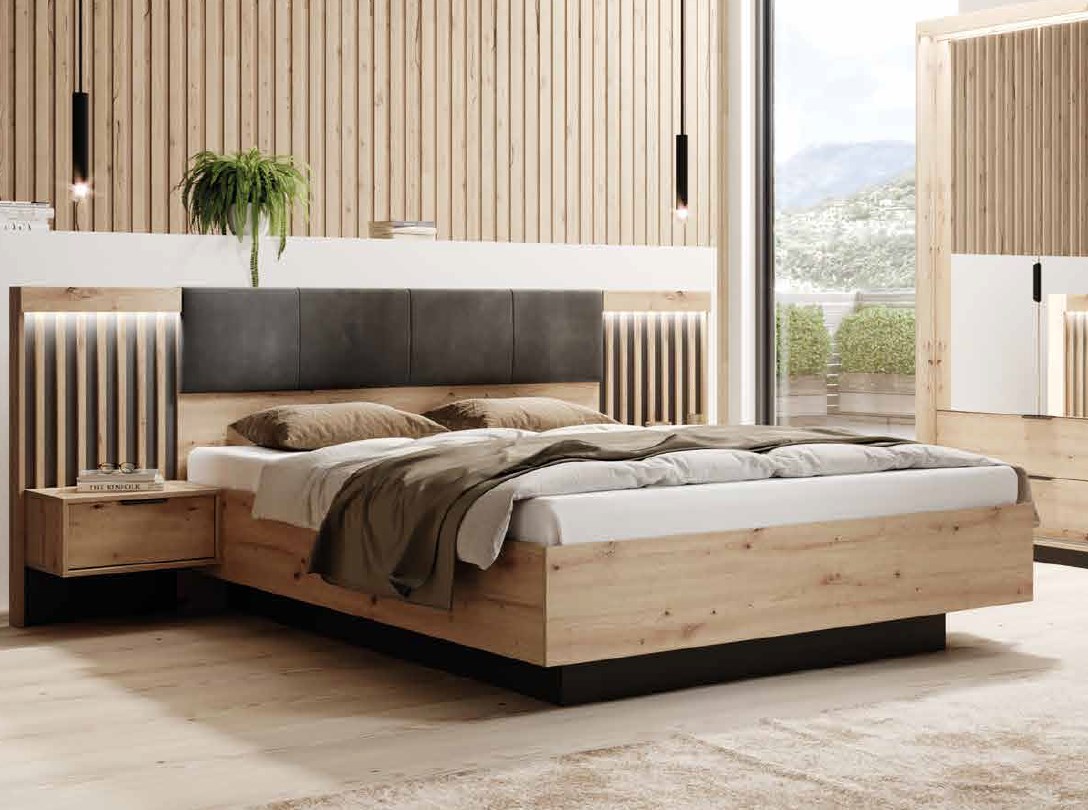 Σετ κρεβατοκάμαρας Viki Φυσικό Dab Barista με αποθηκευτικό χώρο για στρώμα 160x200cm 3 τεμαχίων