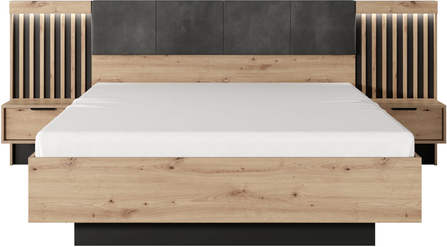 Το σετ TALLY περιλαμβάνει έναν τέλειο συνδυασμό συγκρατημένων γήινων χρωμάτων – φυσικό artizan με ανθρακί – δίνει σε κάθε υπνοδωμάτιο μια ζεστή, φυσική ατμόσφαιρα. Τα πηχάκια που χρησιμοποιούνται στις προσόψεις των ντουλαπιών και των συρταριών και το κεφαλάρι του κρεβατιού προσθέτουν μοντέρνο χαρακτήρα στη συλλογή και τονίζουν τον χαρακτήρα των μασίφ. Μια εξαιρετικά λειτουργική συλλογή. Ένα άνετο κρεβάτι, εμπλουτισμένο με ένα ντυμένο κεφαλάρι και χρήσιμα κομοδίνα.