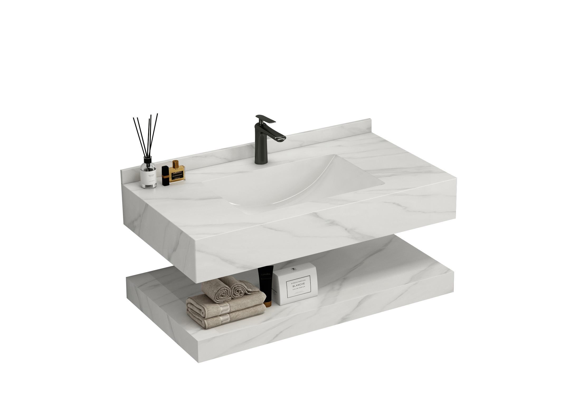 Σετ Πάγκου MERILYN 80 χρ. ΛΕΥΚΟ ΜΑΡΜΑΡΟ S3BWMER080WHS Μοναδική αισθητική – Ξεχωριστή ποιότητα Γνωρίστε τη νέα σειρά επίπλων μπάνιου με την εγγύηση ποιότητας MARTIN. Κατασκευασμένο από πυροσυσσωματωμένη πέτρα (sintered stone) και άλλα σύγχρονα υλικά Αποτελείται από: Νιπτηρόπαγκο διαστάσεων 80x50x20 cm με 1 γούρνα. Διαθέτει έτοιμες υποδοχές για τις μπαταρίες Κάτω ράφι ενιαίο, κατασκευασμένο από το ίδιο υλικό, διαστάσεων 80x50x8 cm