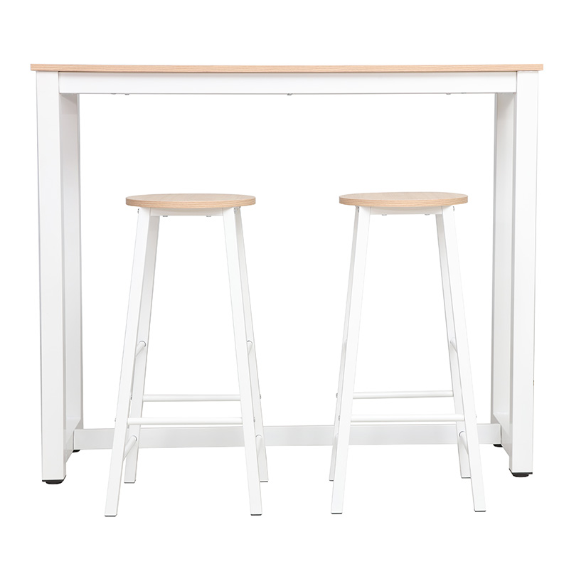 Σετ τραπέζι μπαρ Marle pakoworld 3τμχ φυσικό-λευκό πόδι 120x40x100εκ
