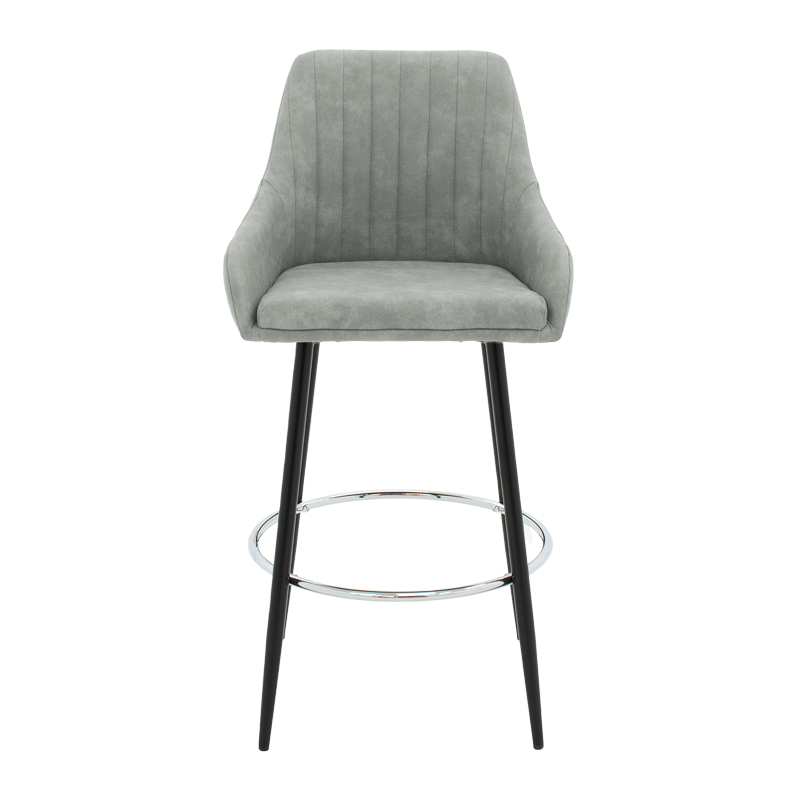 Σκαμπό bar Cody pakoworld μεταλλικό μαύρο-ύφασμα ανοιχτό γκρι antique