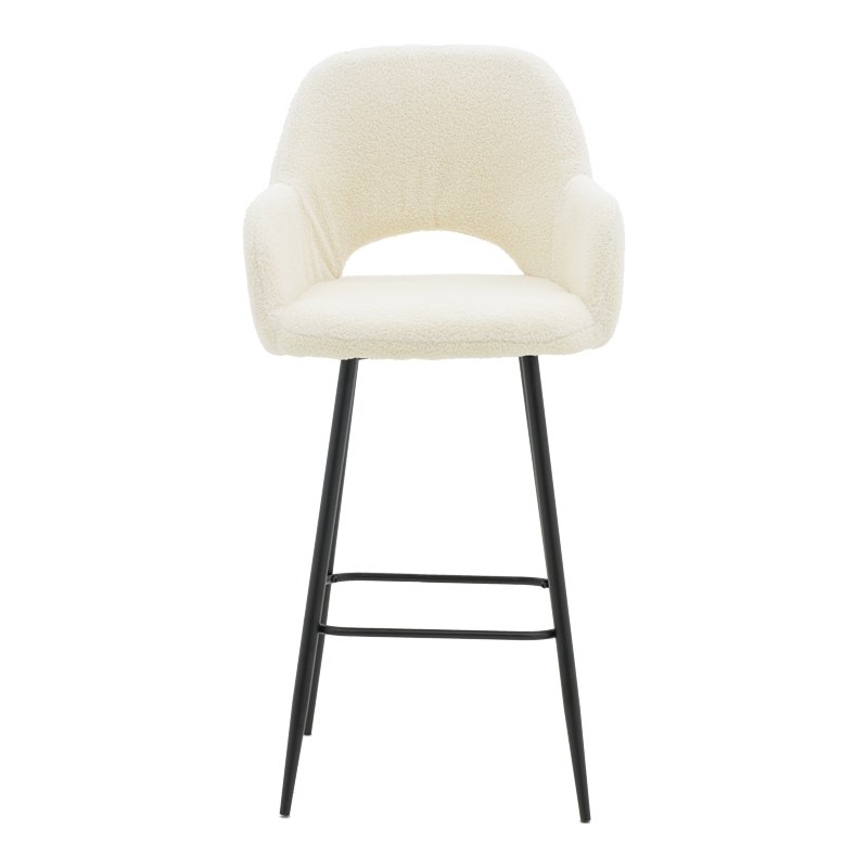 Σκαμπό bar Renish pakoworld μπουκλέ εκρού-μεταλλικό μαύρο πόδι 51x57x114εκ