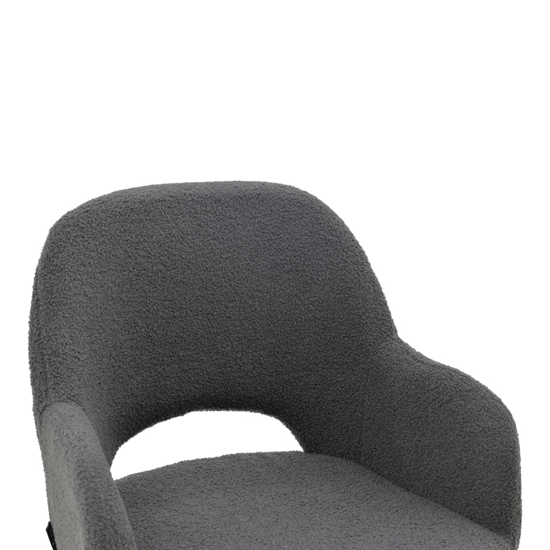 * Πλάτη και έδρα ενιαία, κατασκευασμένες από ενισχυμένο μεταλλικό σκελετό και επενδυμένες με μπουκλέ ύφασμα υψηλής ποιότητας και αντοχής