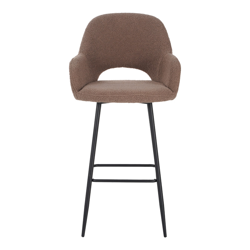 Σκαμπό μπαρ Renish pakoworld μπουκλέ ύφασμα σε cappuccino απόχρωση με μαύρα μεταλλικά πόδια 51x57x114εκ