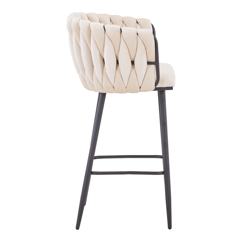 Σκαμπό μπαρ Vivian pakoworld μπεζ βελούδο-πόδι μαύρο μέταλλο 57x50x100εκ