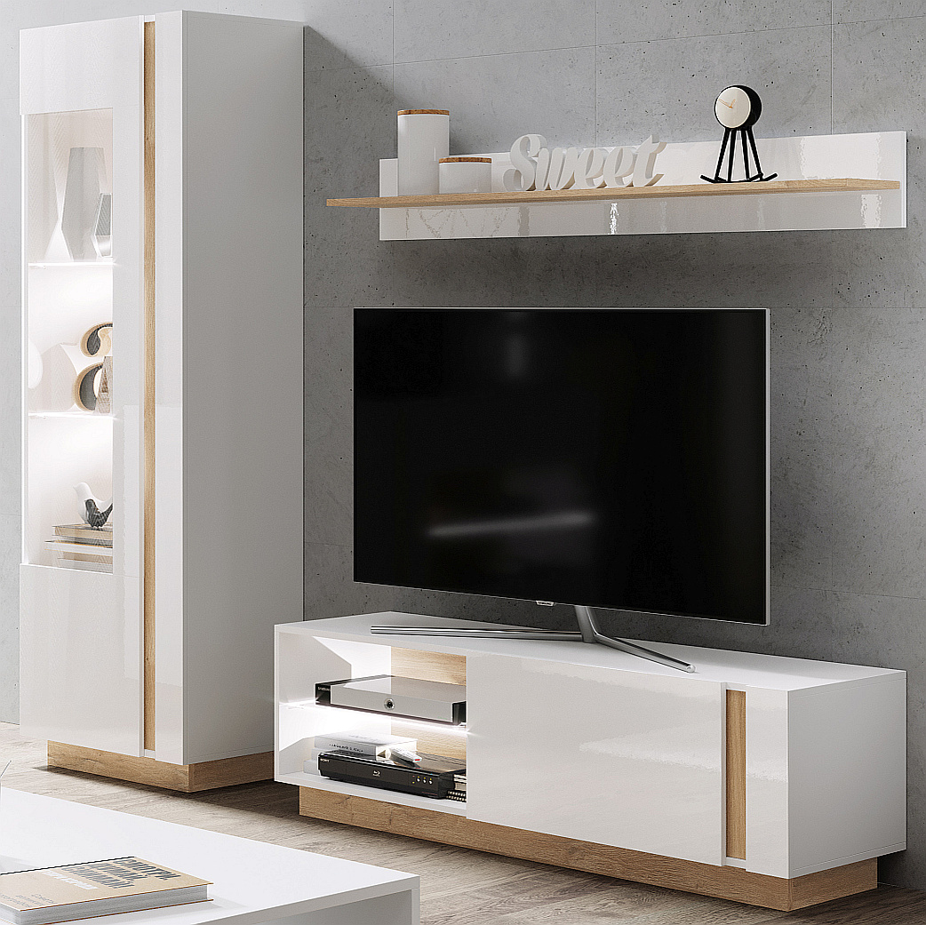 Σύνθεση Τηλεόρασης Astin 203×45.3×180εκ Χρυσός Δρύς Με Λευκό