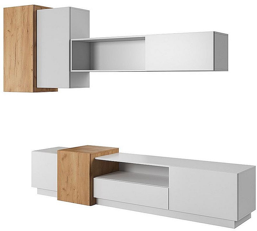Οι φυσικές ξύλινες πινελιές που διαπερνούν και θερμαίνουν τη λευκότητα, δίνουν στο έπιπλο έναν μοναδικό χαρακτήρα. Ένας απλός αλλά πρωτότυπος σχεδιασμός που θα επιτρέψει μια ενδιαφέρουσα διάταξη χώρων σε κάθε σαλόνι.