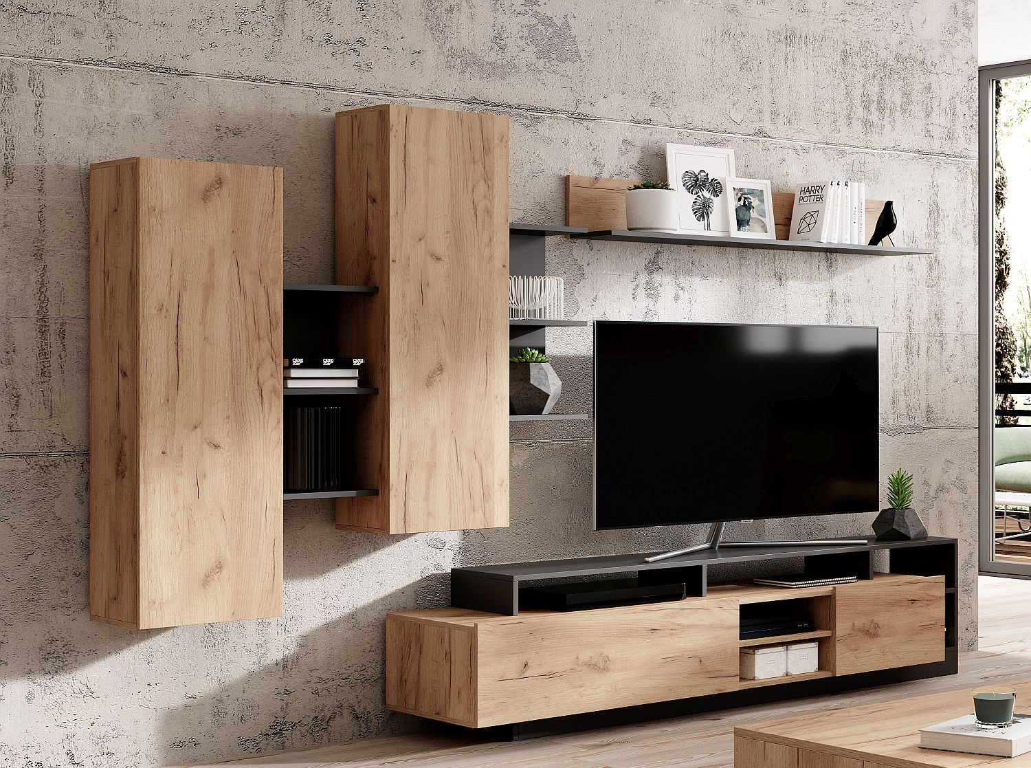 Σύνθεση Τηλεόρασης DAMIS Sonoma με MDF λεπτομέρειες 328x45x210εκ