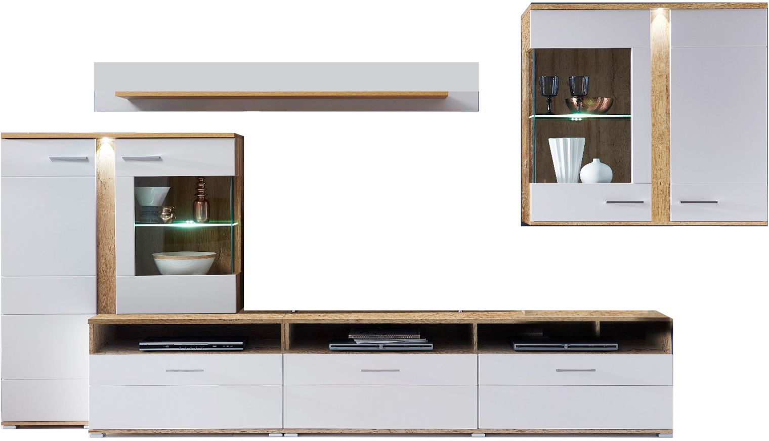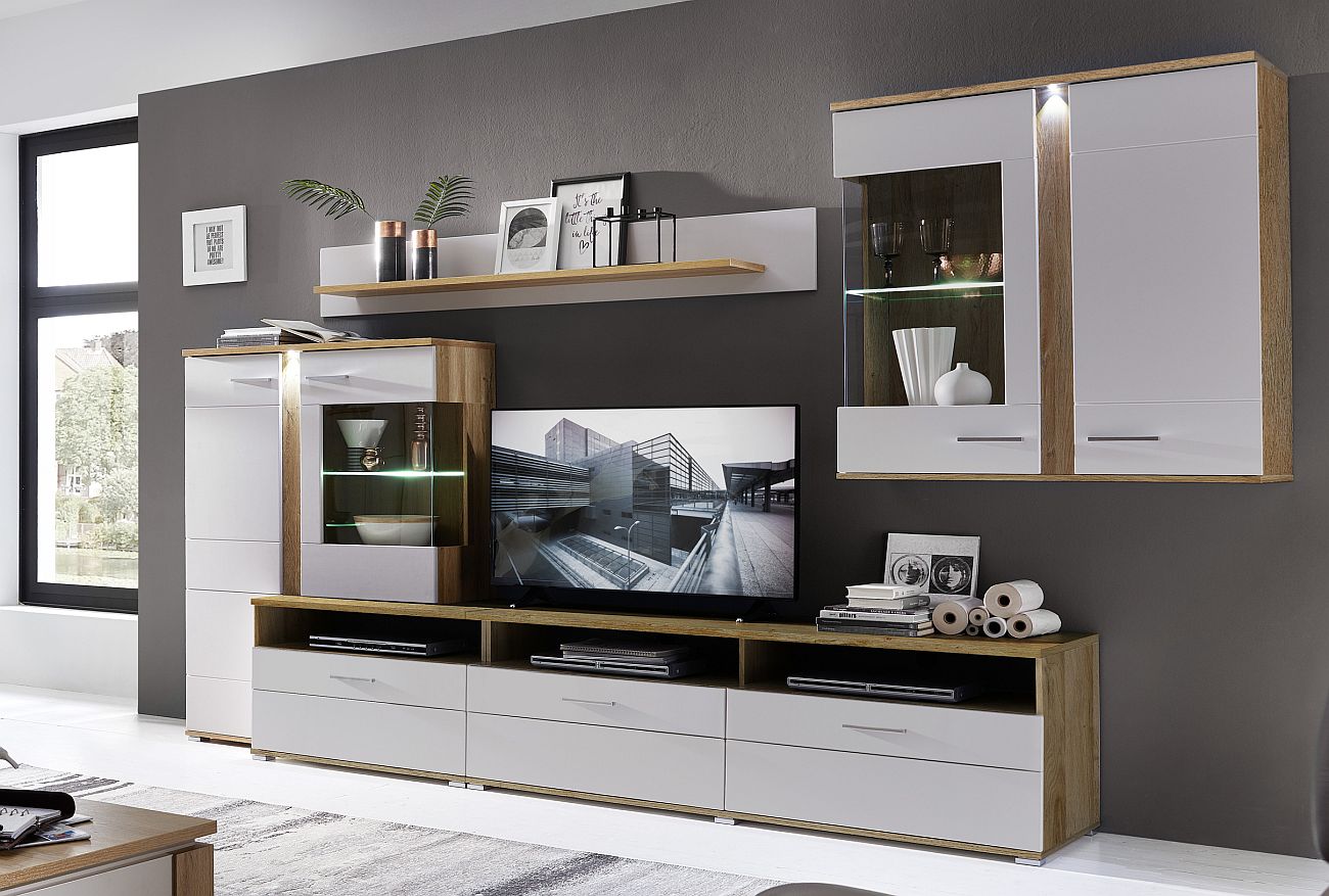 Σύνθεση Τηλεόρασης SOLO PINE 293x41x184cm Νορβηγικό Λευκό με φυσικό δρυ