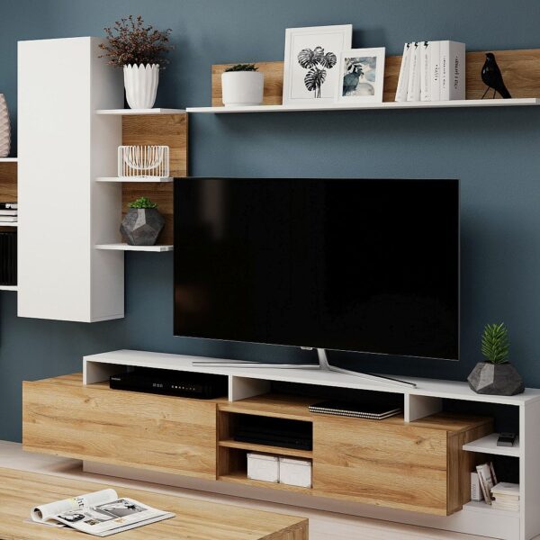 Σύνθεση Τηλεόρασης VERNE 197.6x45x191.6εκ Λευκό-Φυσικός Δρυς