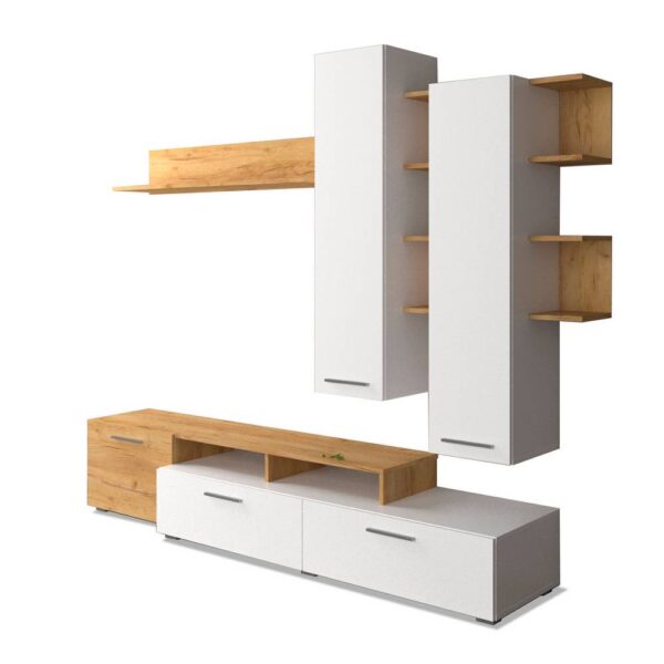 Σύνθεση Τηλεόρασης OMELA 260x42x193εκ Χρυσός Δρύς Με Λευκό