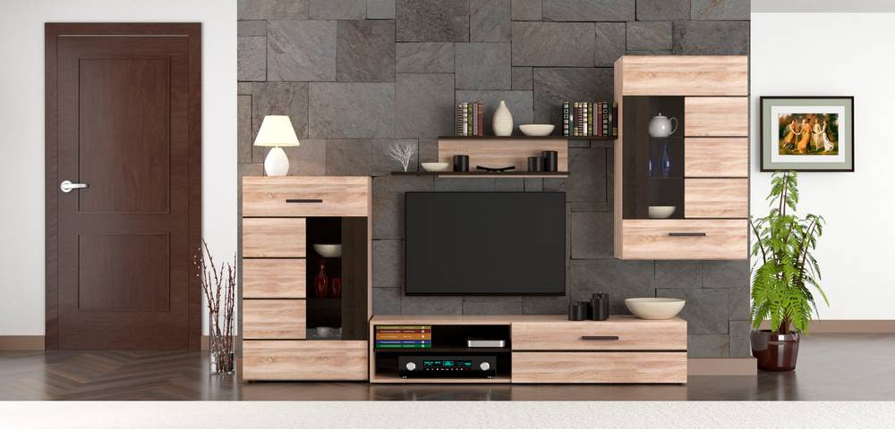 Σύνθεση Τηλεόρασης Solo 293x41x184cm Sonoma με Wenge MDF Καμπυλωτό τελείωμα
