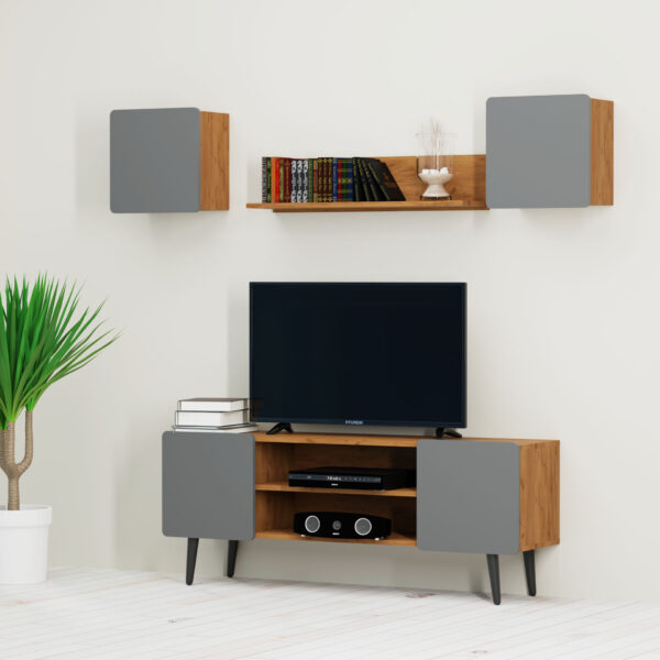 Σύνθεση τηλεόρασης 4τεμαχίων Arktos1 Καρυδί-Γκρι