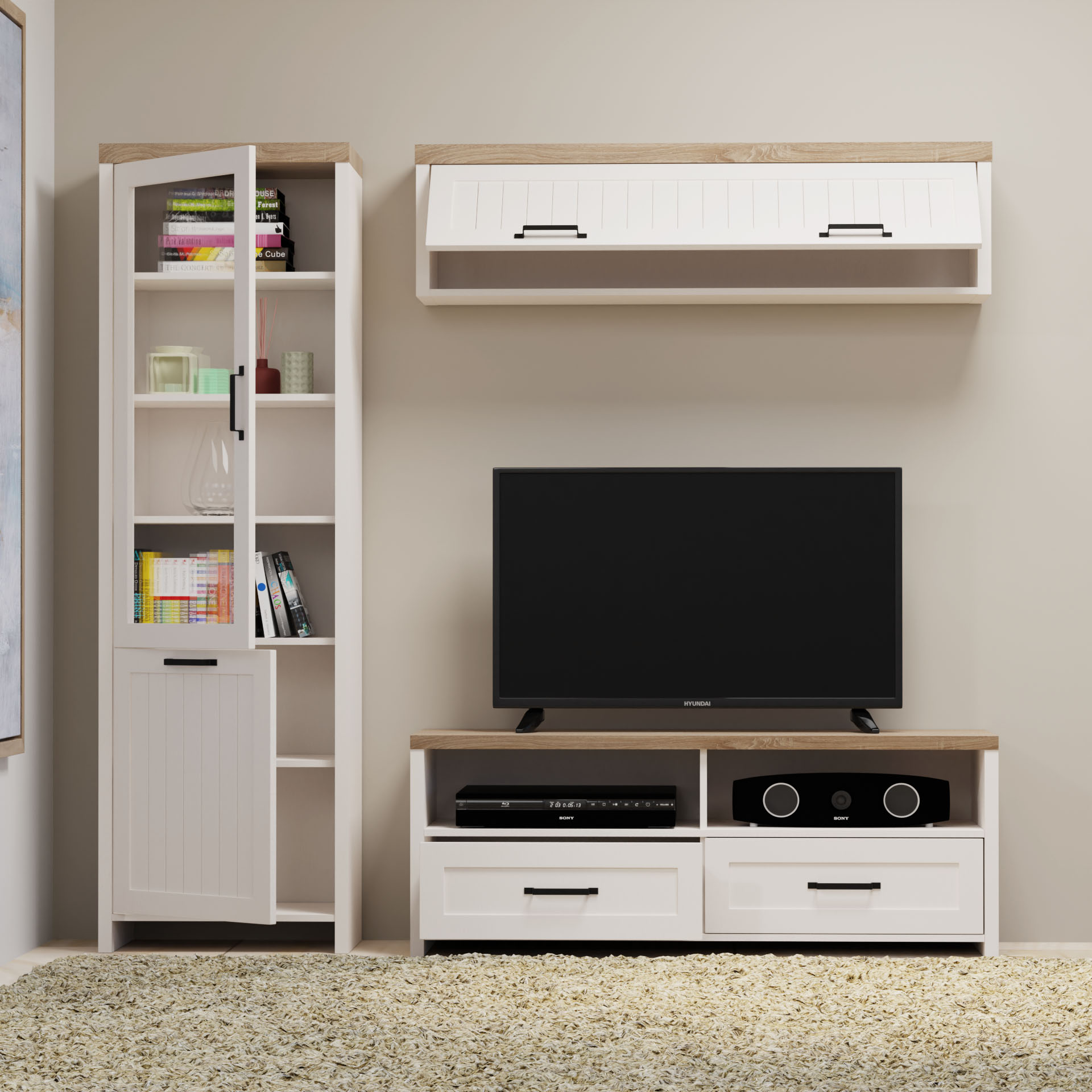 Σύνθεση Τηλεόρασης VERNE 197.6x45x191.6εκ Λευκό-Φυσικός Δρυς