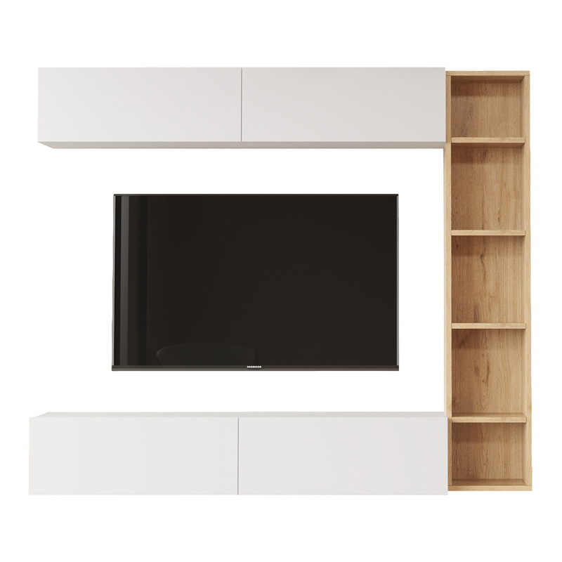 Σύνθετο σαλονιού Compo επιτοίχιο pakoworld σε oak-λευκό απόχρωση 169,10×25,8×143.5εκ