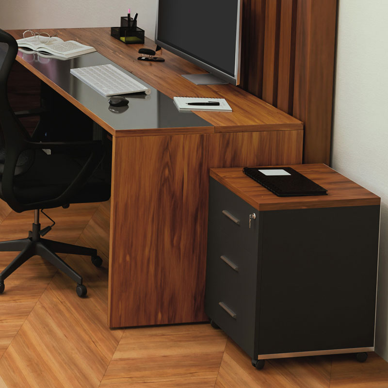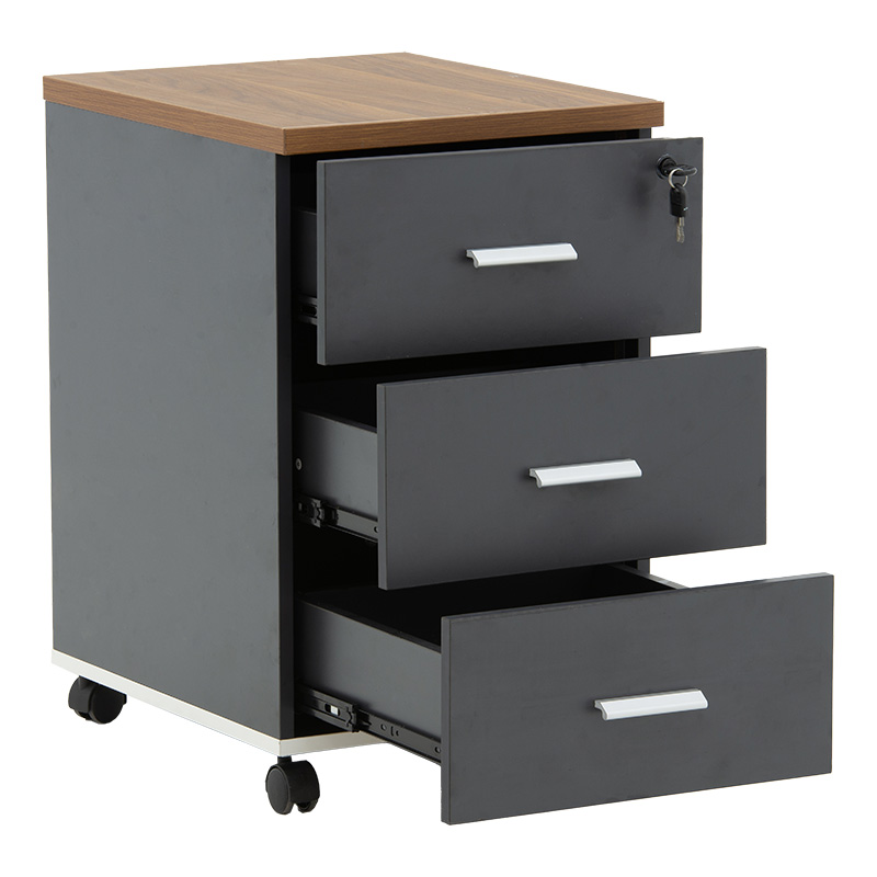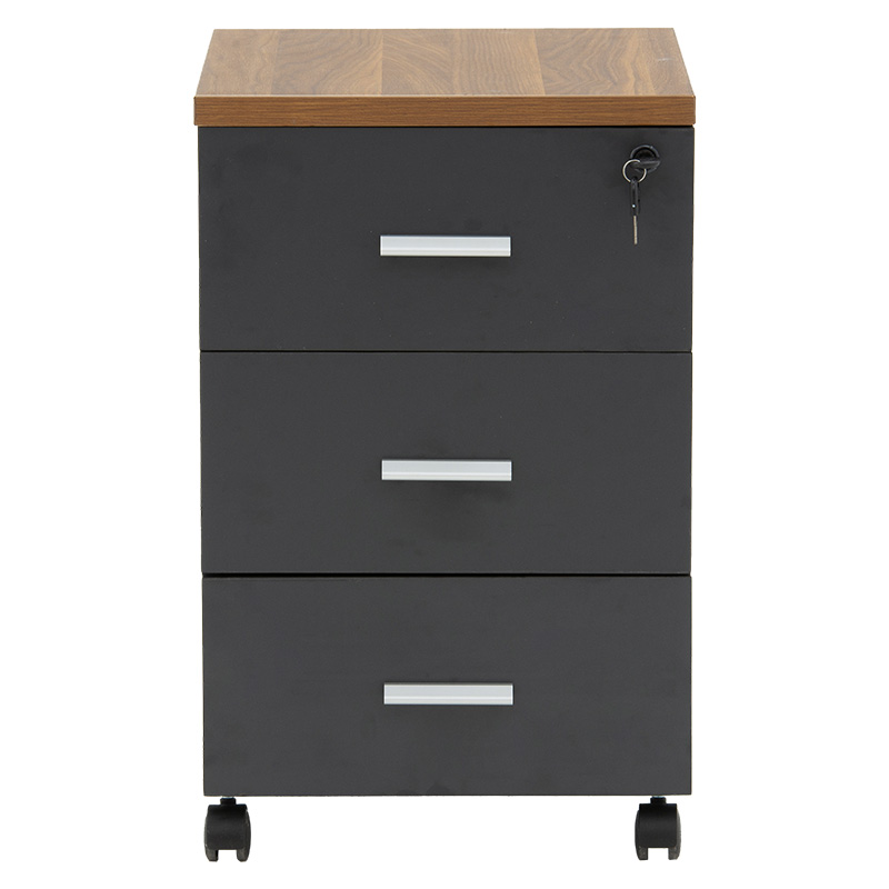 Συρταριέρα επαγγελματική τροχήλατη Oscar pakoworld 3ων συρταριών καρυδί-ανθρακί 40x48x63εκ
