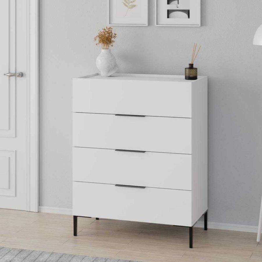 Η συρταριέρα Oryana είναι ένα πολύ πρακτικό έπιπλο σε μοντέρνο στυλ, έχει τέσσερα πολύ μεγάλα συρτάρια, καθιστώντας την ιδανικό μέρος για την αποθήκευση αντικειμένων. Ο μοντέρνος, μινιμαλιστικός σχεδιασμός σε συνδυασμό με το λευκό χρώμα κάνει τη συρταριέρα να φαίνεται εξαιρετικά κομψή.