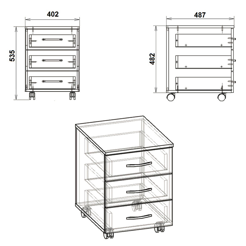 Συρταριέρα επαγγελματική τροχήλατη Oscar pakoworld 3ων συρταριών καρυδί-ανθρακί 40x48x63εκ