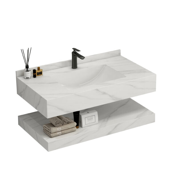 TOP ΒΑΣΗ STONE 80cm χρ,WHITE με γκρι νερά S3BTOP-CT1-81WH Η ιδανική επιλογή σε διάσταση 80cm για μικρό μοντέρνο μπάνιο ή για Airbnb Αποτελείται από: Top βάση stone 80cm σε χρώμα λευκό με γκρι νερά 81×47,5cm Νιπτήρας Επικαθούμενος Πορσελάνης 50,5×40,5×14 cm Εύκολη τοποθέτηση Ετοιμοπαράδοτα προϊόντα Δεν συμπεριλαμβάνονται η μπαταρία, η στήλη και τα διακοσμητικά. Διατίθεται έτοιμο συναρμολογημένο.