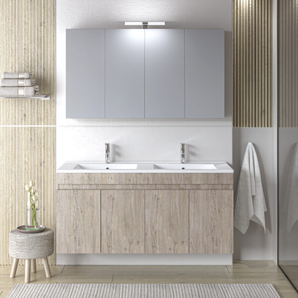 Σετ Πάγκου OMEGA 120cm με Διπλό Νιπτήρα χρ.BEIGE OAK S3BOM120BO0D
