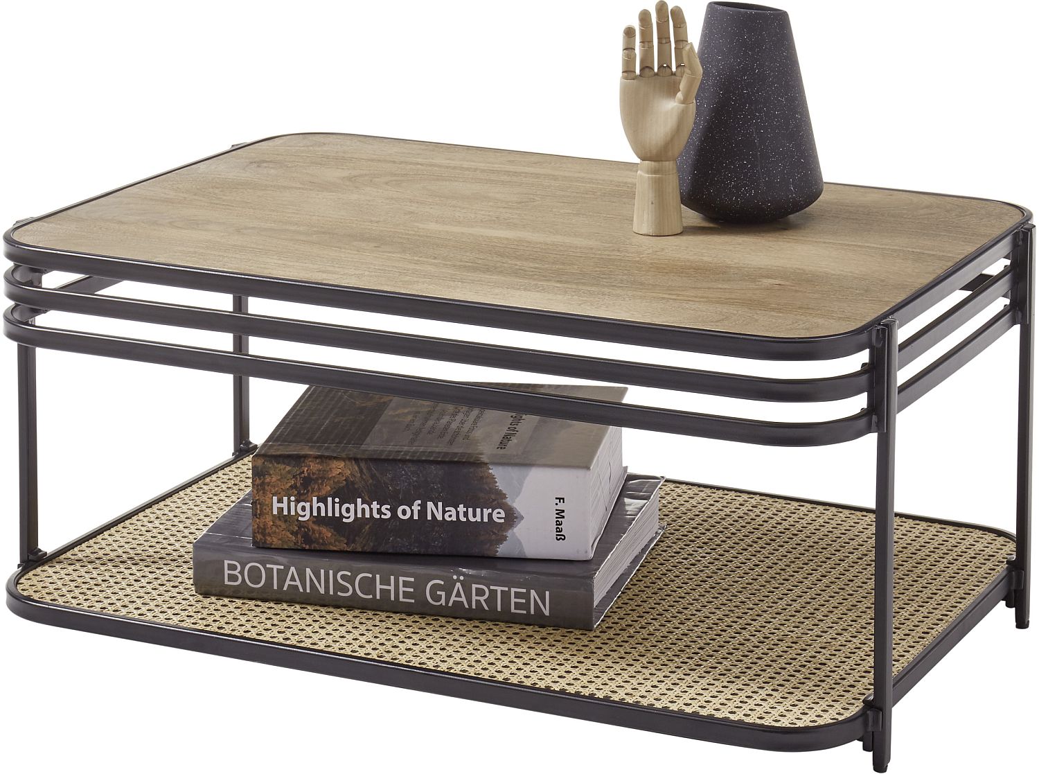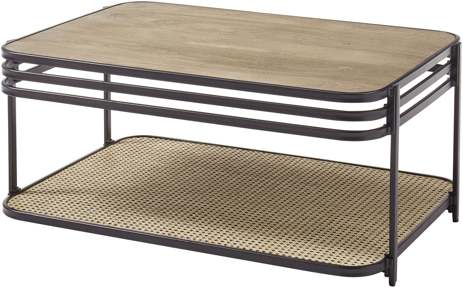 Τραπέζι καναπέ υψηλής ποιότητας με ράφι από βιεννέζικη ψάθα και μαύρο μεταλλικό πλαίσιο
