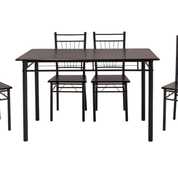 Τραπεζαρία Roza pakoworld σετ 5τμχ χρώμα σκούρο καρυδί – πόδια μαύρο ματ 120x70x75εκ