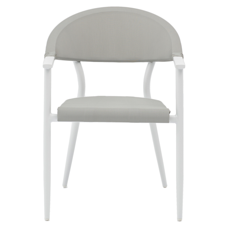 - Σταθερός σκελετός από εξαιρετικής ποιότητας αλουμίνιο (Dia.28xT1.5mm) με αντοχή στην καταπόνηση και στη φθορά. Κυρίως σώμα καρέκλας από εξαιρετικής ποιότητας textilene. Το textilene είναι ύφασμα μεγάλης αντοχής στην ηλιακή ακτινοβολία και την υγρασία ενώ παράλληλα αφήνει το δέρμα να “αναπνέει” δημιουργώντας έτσι άνεση στο κάθισμα.